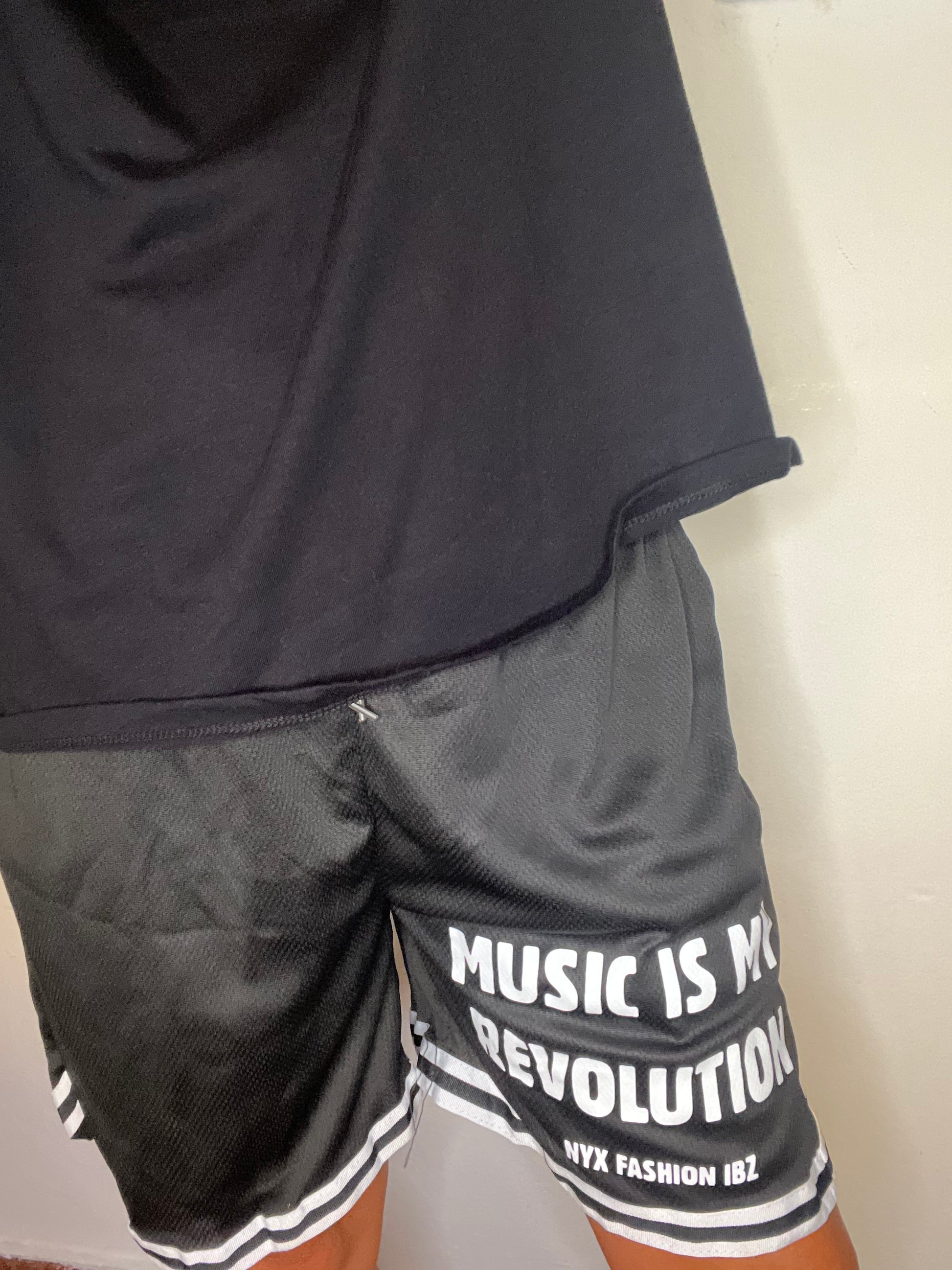 Shorts basket negro deportivos de hombre largos Music is My revolution